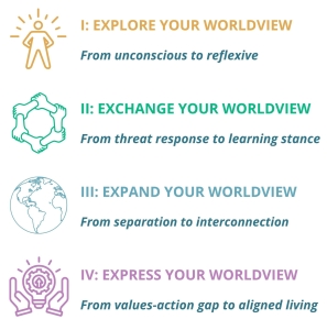 The Worldview Journey is a research-informed, transformative learning program combining powerful knowledge, deep dialogue, and experiential learning. It fosters four profound shifts: